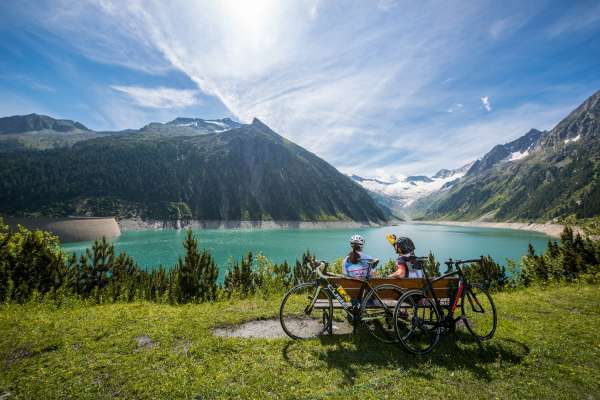 Bärenbadalm in the Zillergrund. The tour then runs through two tunnels and ends directly at the spectacular dam wall of the impressive reservoir lake.